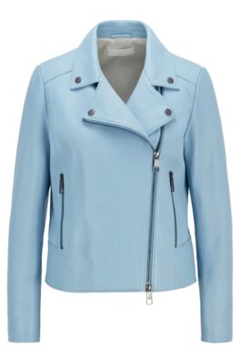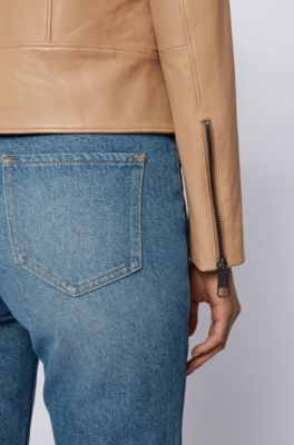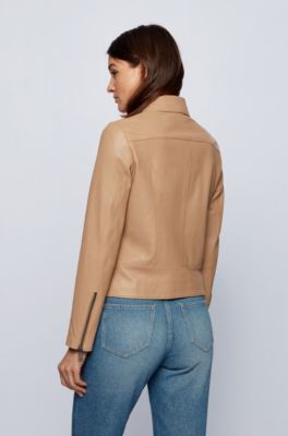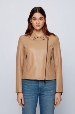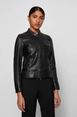 Hugo Boss Coats for Women. Regular-fit leather jacket with textured panels. Regular-fit biker jacket in washed-leather.